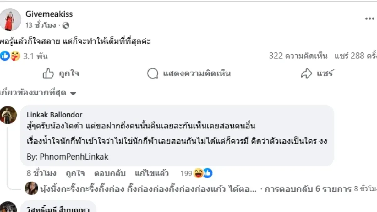 แม้จะมีความไม่สบายใจภายในทีมที่ถูกสื่อสารผ่านโพสต์ปริศนาของเพื่อนร่วมทีมอย่าง นางสาวจอมคน พุ่มสีนิล หรือ Givemeakiss ที่กล่าวว่า "พอรู้แล้วก็ใจสลาย" แต่เช้าวันรุ่งขึ้น (16 ธันวาคม) ทาง Jenniex อีกหนึ่งผู้เล่นก็ได้ออกมาประกาศขอโฟกัสการแข่งขันที่กำลังจะมาถึงกับ สปป.ลาว ก่อน เพื่อพยายามตีตั๋วเข้าไปล้างตากับเวียดนามในรอบชิงเหรียญทองให้ได้