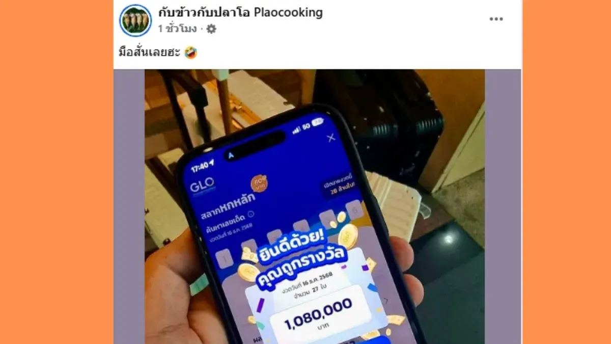 วันที่ 16 ธันวาคม 2568 หลังการประกาศผลรางวัลสลากกินแบ่งรัฐบาล ประจำงวดวันที่ 16 ธันวาคม 2568 ได้เกิดกระแสฮือฮาขึ้นในโลกออนไลน์ เมื่อเพจสอนทำอาหารชื่อดัง "กับข้าวกับปลาโอ Plaocooking" ได้เผยภาพความโชคดีถูกรางวัลใหญ่ต่อเนื่อง