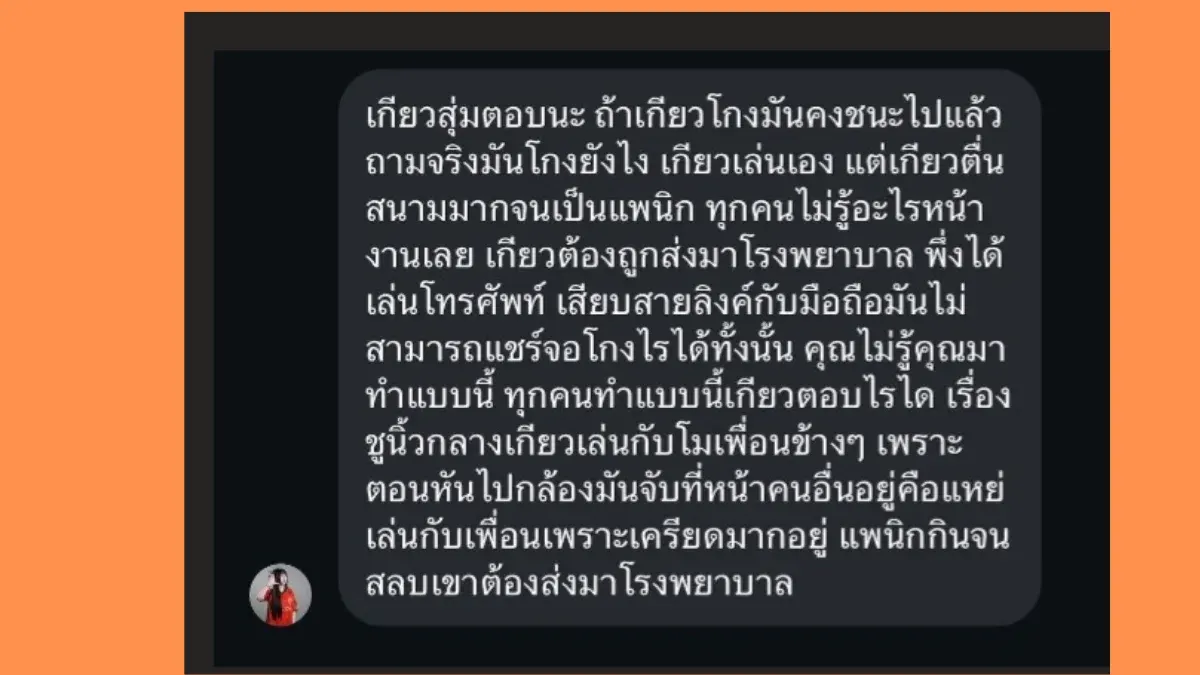 ปฏิเสธการโกง: "เกียวสุ่มตอบนะ ถ้าเกียวโกงมันคงชนะไปแล้ว ถามจริงมันโกงยังไง เกียวเล่นเอง แต่เกียวตื่นสนามมากจนเป็นแพนิก ทุกคนไม่รู้อะไรหน้างานเลย"