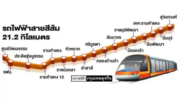 รถไฟฟ้าสายสีส้ม (MRT Orange Line) เป็นโครงการรถไฟฟ้าสายสำคัญที่เชื่อมต่อกรุงเทพฯ ตะวันออก-ตะวันตก (บางขุนนนท์-มีนบุรี) โดยแบ่งเป็น 2 ช่วง คือ ส่วนตะวันออก (ศูนย์วัฒนธรรมฯ-มีนบุรี) ซึ่งกำลังก่อสร้าง (บางส่วนใกล้เสร็จ) และ ส่วนตะวันตก (บางขุนนนท์-ศูนย์วัฒนธรรมฯ) ที่เพิ่งเซ็นสัญญากับ BEM (ผู้รับสัมปทาน) และเริ่มดำเนินการ โดยคาดว่าส่วนตะวันออกจะเปิดให้บริการก่อน (ประมาณปี 2571) และเปิดทั้งสายในปี 2573 เพื่อลดปัญหาจราจรและเพิ่มทางเลือกการเดินทาง.รายละเอียดโครงการ: