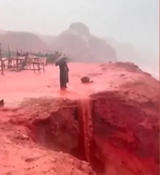 เกาะฮอร์มูสขึ้นชื่อเรื่องทรายสีแดงอยู่แล้ว พอฝนมาแรงๆ ภาพที่ออกมาก็เลยอลังการจนคนแชร์กัน