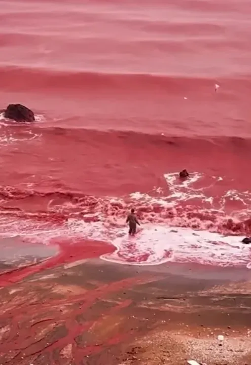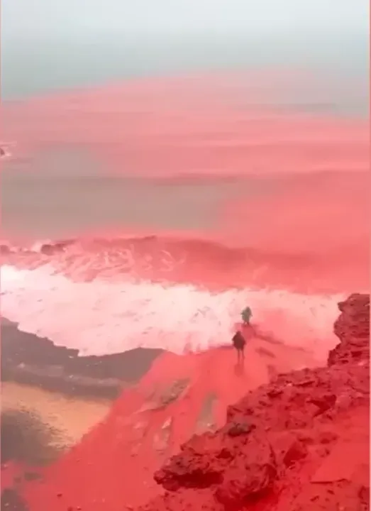 น้ำฝนไปชะเอาแร่ธาตุที่อยู่ในดินไหลลงสู่ทะเล จนชายหาดกับน้ำทะเลกลายเป็นสีแดงเหมือนเลือด ซึ่งตัวการจริงๆ ก็คือแร่เหล็กหรือไอออนออกไซด์นั่นแหละ