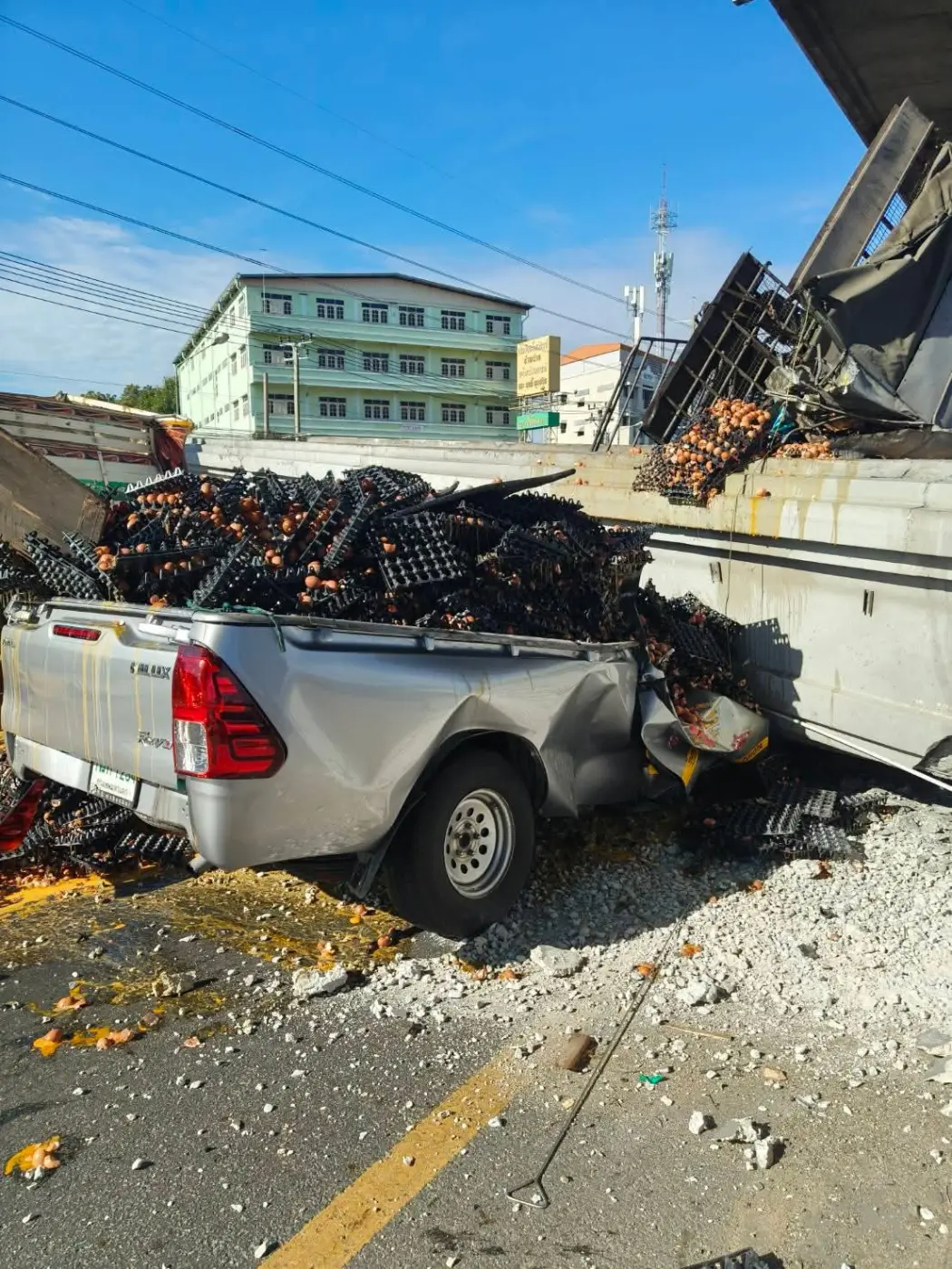 รายงานเบื้องต้นระบุว่ามีผู้บาดเจ็บติดอยู่ภายในซากรถเจ้าหน้าที่กู้ภัยและหน่วยงานที่เกี่ยวข้องกำลังเร่งดำเนินการใช้เครื่องมือตัดถ่างเพื่อนำตัวออกมาส่งโรงพยาบาล