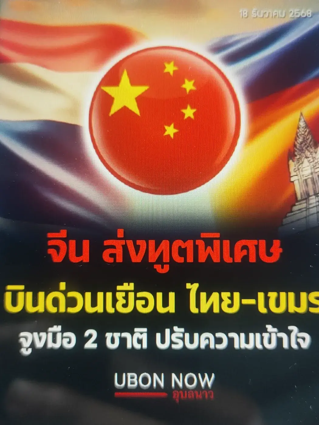 เมื่อคืนวันพุธที่ 17 ธ.ค. 2568 โฆษกกระทรวงการต่างประเทศของจีน ประกาศว่า ทูตพิเศษด้านกิจการเอเชียจะเดินทางเยือนประเทศกัมพูชากับไทยอีกครั้งในวันพฤหัสบดีนี้ (18 ธ.ค.) เพื่อดำเนินการเจรจาทางการทูตแบบไปกลับ (shuttle diplomacy) เพื่อส่งเสริมการลดความตึงเครียด และช่วยให้ทั้งสองฝ่ายฟื้นฟูสันติภาพกลับคืนมา