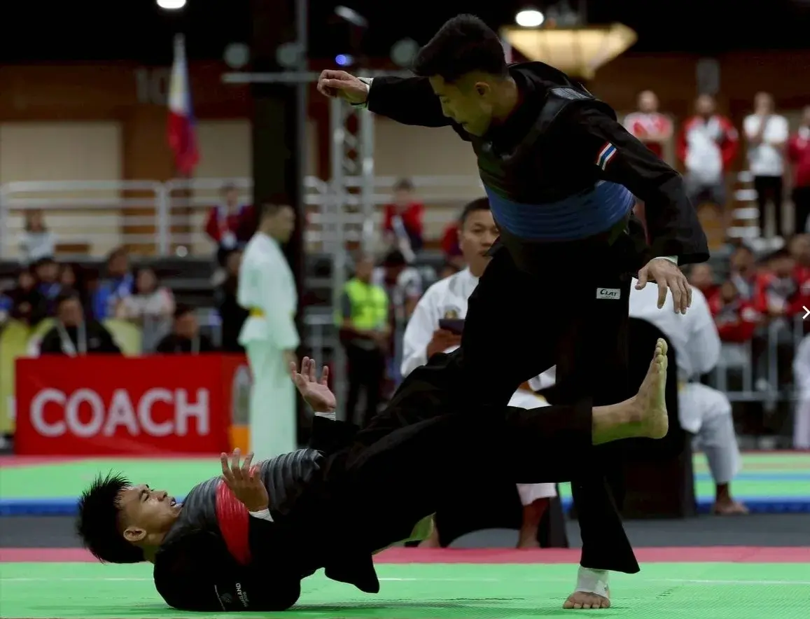 นักกีฬาปันจักสีลัตทีมชาติไทย ประเภทต่อสู้ชาย รุ่น 60-65 กิโลกรัม 'ปืน' พีรพล มิตทสาร พลาดเหรียญทอง เพราะกรรมการเปลี่ยนผลการตัดสินแป๊ปเดียวก่อนพิธีมอบเหรียญรางวัลจะเริ่มขึ้นอีก
