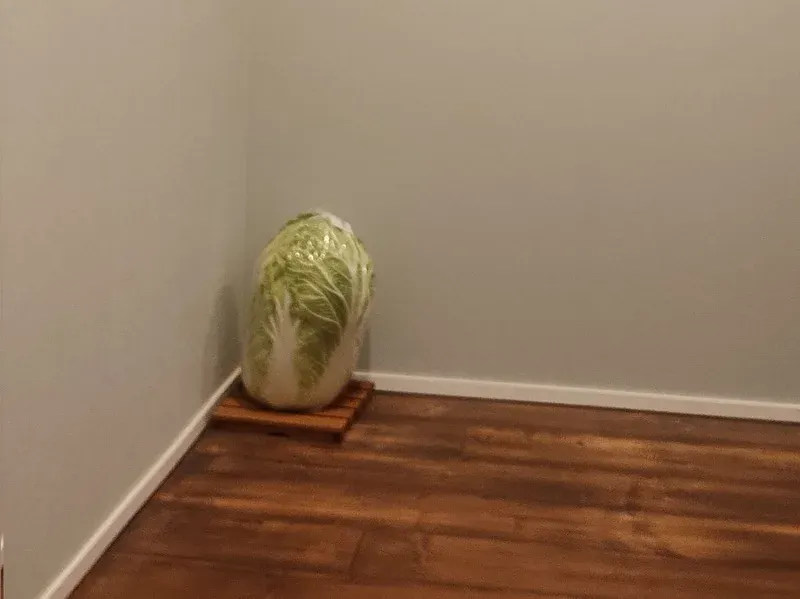 แต่เมื่อเขานำผักกาดขาวไปวางตั้งตระหง่านไว้ที่มุมทางเข้าบ้าน แสงไฟและตำแหน่งการจัดวางกลับทำให้บรรยากาศเปลี่ยนไปอย่างสิ้นเชิง เขาถึงกับอุทานและโพสต์ลงโซเชียลว่า "พอย้ายมาวางตรงนี้ปุ๊บ ทางเข้าบ้านก็ดูเหมือนพิพิธภัณฑ์กู้กงของไต้หวันขึ้นมาทันทีเลย!"