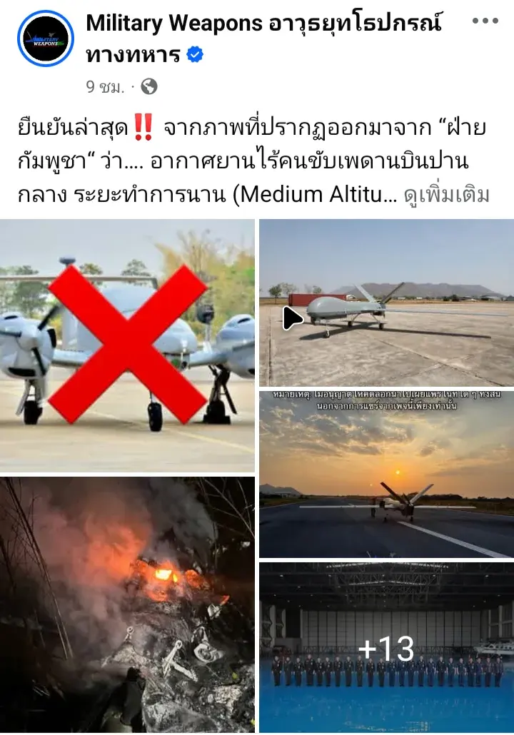 แชร์กันเหมือนสรุปผลรบเรียบร้อยแล้ว ทั้งที่ความจริงคือฝั่งไทย โดยเฉพาะกองทัพอากาศ ยังไม่ได้ออกมายืนยันอย่างเป็นทางการเลยว่ามีการสูญเสีย UAV จริงหรือไม่