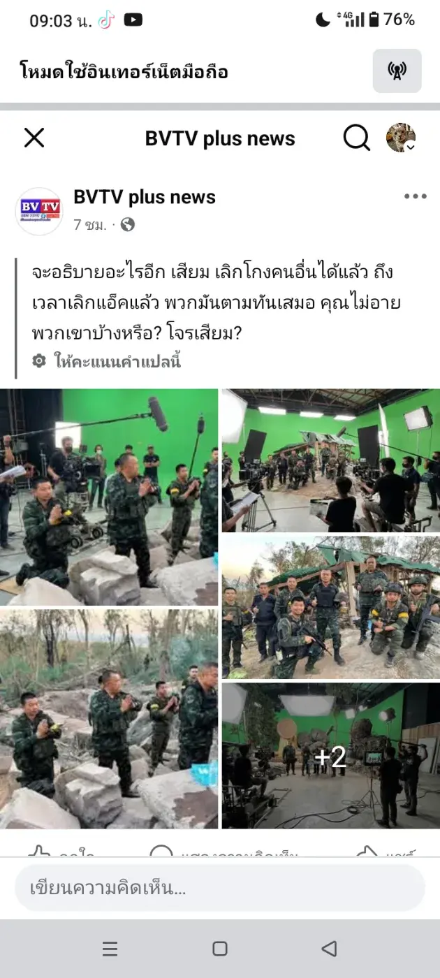ยังไม่พอ สื่อกัมพูชาบางเจ้าก็รับลูกต่อ อย่าง BVTV เอาภาพปลอมไปโพสต์ซ้ำ พร้อมแคปชั่นเดือดๆ ด่าคนไทยชุดใหญ่ กล่าวหาว่าจัดฉาก หลอกลวง แสดงละครบ้างอะไรบ้าง😑