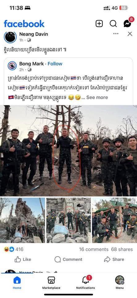 ทำให้ดูเหมือนเป็นการจัดฉากถ่ายในสตูดิโอแล้วเอาไปโพสต์ปั่นหัวคนในประเทศตัวเอง บอกว่าไทยหลอกประชาชนทั้งประเทศ อดีตแม่ทัพไม่ได้ลงพื้นที่จริง แถมอ้างหน้าตาเฉยว่าทหารกัมพูชายังยึดปราสาทตาควายไว้ได้อย่างแข็งแกร่ง