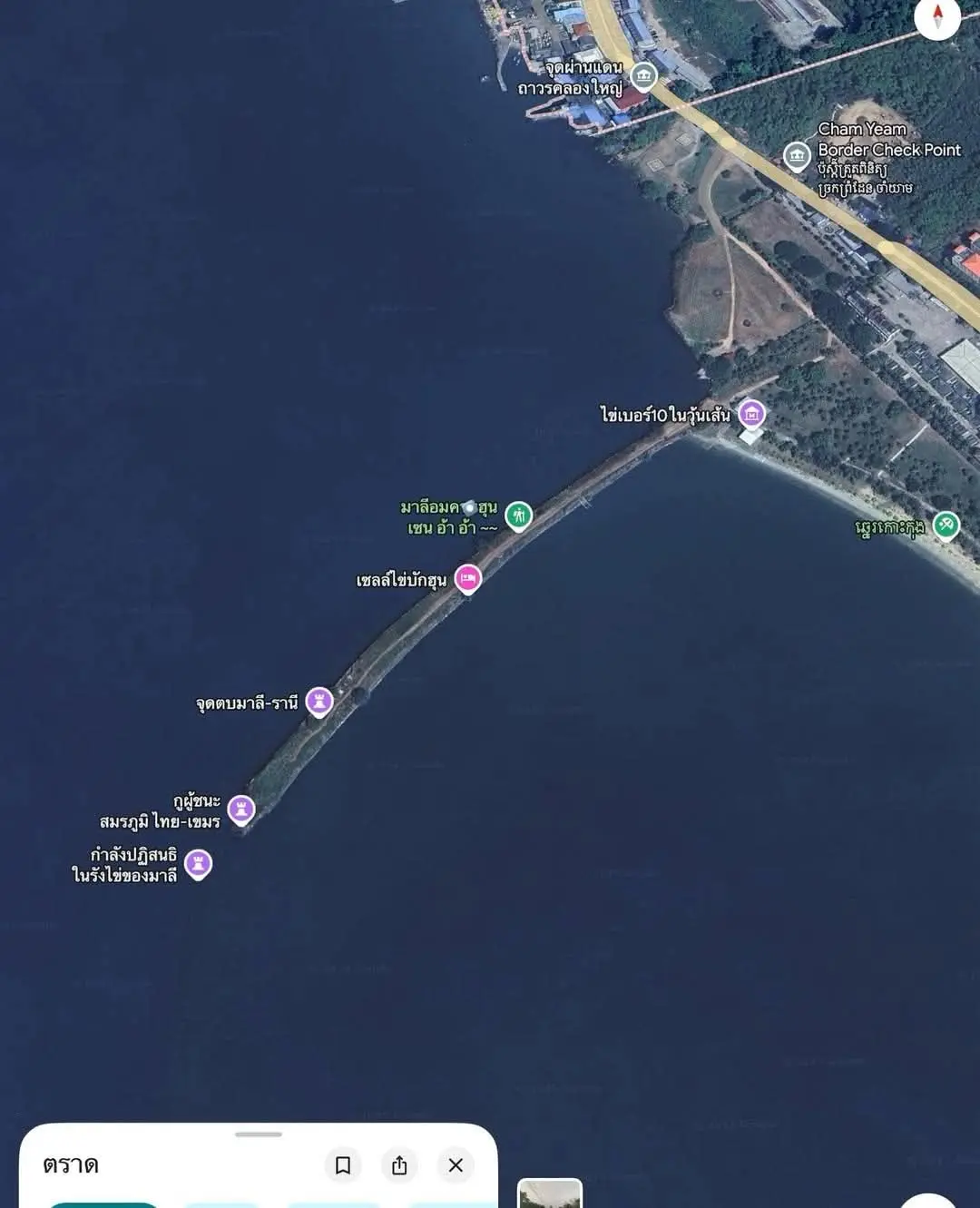 วันที่ 20 ธ.ค.2568 หน่วยเฉพาะกิจนาวิกโยธินตราด ได้เข้าควบคุมพื้นที่ ตลอดแนวชายแดนฝั่งจันทบุรีและตราดเบ็ดเสร็จ ได้เจรจากับ ทหารกัมพูชาให้รื้อทำลายเขื่อนดักตะกอน บริเวณบ้านหาดเล็ก ที่ยื่นลงไปในทะเลตรงหลักกิโลเมตรที่ 73 เพื่อหวังเปลี่ยนแปลงแนวเขตแดนตามหลักเขตที่ 73