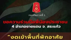 ด่วน! กองทัพภาค 1 แจ้งเตือนประชาชน 4 อำเภอชายแดน ‘สระแก้ว’ งดเข้าที่พักอาศัย-ด่วน! ทภ.1 แจ้งเตือนประชาชน 4 อำเภอชายแดนสระแก้ว