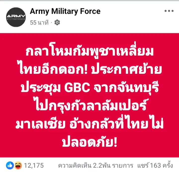 สวัสดีชาว postjung กันทุกคน งานนี้บอกเลยว่า มีเหลี่ยมอีกแล้วจริงๆ ล่าสุดกลาโหมกัมพูชาประกาศย้ายการประชุม GBC จากที่ตกลงกันไว้ที่ จันทบุรี ไปที กรุงกัวลาลัมเปอร์ มาเลเซีย ซะงั้น เหตุผลคืออะไรรู้ไหม บอกว่า กังวลเรื่องความปลอดภัยในไทย