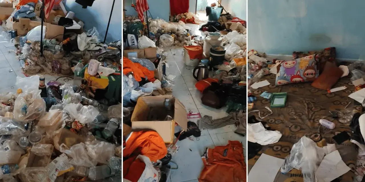 ภายในห้องเช่าถูกทิ้งให้กลายเป็นแหล่งสะสมขยะ มีเสื้อผ้า ขวดพลาสติก เศษอาหาร และ ถุงขยะกองกระจัดกระจายเต็มพื้น กล่องกระดาษและถุงพลาสติกที่บรรจุ ขยะวางเกลื่อนจนเหลือเพียงทางเดินแคบๆ ขยะยังถูกวางทับอยู่บนเตียงด้วย ภายในห้องมีกลิ่นเหม็นรุนแรง สิ่งที่ทำให้เธอรู้สึกสะเทือนใจมากที่สุดคือ การพบผ้าอนามัยใช้แล้วถูกทิ้งไว้โดยไม่ปกปิด รวมถึงบริเวณใกล้ห้องน้ำ