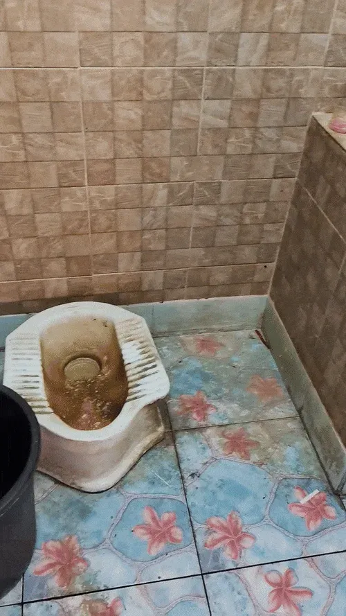 ส่วนห้องน้ำเองก็อยู่ในสภาพทรุดโทรม โถส้วมแบบนั่งยองมีคราบสกปรกอย่างหนัก และ พื้นที่โดยรอบขาดการดูแลด้านสุขอนามัยอย่างเห็นได้ชัด