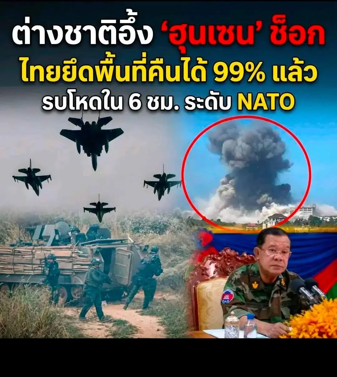 จากรายงานล่าสุดยืนยันแล้วว่าตอนนี้กองทัพไทยของเราสามารถยึดคืนพื้นที่ยุทธศาสตร์สำคัญตามแนวชายแดนได้ถึง 99% แล้ว เรียกว่าเป็นการจบสงครามแบบม้วนเดียวจบ ใช้เวลาปฏิบัติการหลักๆ แค่ 6 ชั่วโมงเท่านั้น