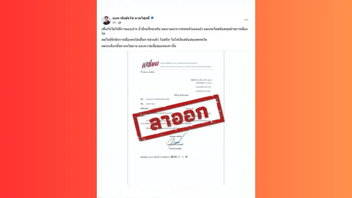 ปิดฉากบทบาทนักการเมือง! "นอท พันธ์ธวัช" ย้ำชัดลาออกพรรคเปลี่ยน พร้อมประกาศจุดยืนไม่หนุนฝ่ายใด