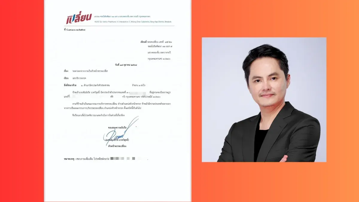 เมื่อวันที่ 24 ธันวาคม 2568 นายพันธ์ธวัช นาควิสุทธิ์ หรือ "นอท ลอตเตอรี่พลัส" ได้โพสต์ข้อความผ่านเฟซบุ๊กส่วนตัวเพื่อย้ำถึงการลาออกจากตำแหน่งหัวหน้าพรรคเปลี่ยนอย่างเป็นทางการ โดยเปิดเผยรายละเอียดในหนังสือลาออกที่ลงวันที่ไว้ตั้งแต่วันที่ 17 ตุลาคม 2568 ซึ่งมีใจความสำคัญระบุว่า ตนเองมีความประสงค์ขอลาออกจากการเป็นคณะกรรมการบริหารพรรคเปลี่ยนและตำแหน่งหัวหน้าพรรค โดยให้มีผลนับตั้งแต่วันที่ระบุในหนังสือเป็นต้นไป