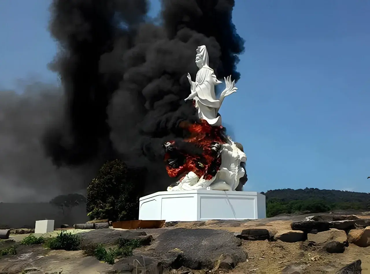 เพจดังแฉภาพเหตุการณ์ในอดีตที่กัมพูชาเคยสั่ง "เผาทำลายศาลเจ้าแม่กวนอิม" จนพินาศมาแล้ว! โดยตอนนั้นอ้างว่าชาวเวียดนามแอบลักลอบเข้ามาสร้างไว้บนเกาะกง ซึ่งเป็นพื้นที่ของกัมพูชา เลยจัดการกวาดล้างแบบไม่สนหน้าอินทร์หน้าพรหม