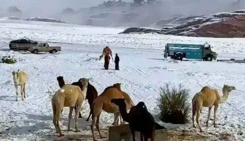 ภูมิประเทศทะเลทรายของซาอุดีอาระเบีย ได้แปรเปลี่ยนเป็นดินแดนฤดูหนาว ราวกับเทพนิยาย โดยพื้นที่ทางตอนเหนือของประเทศ เพิ่งประสบกับปรากฏการณ์หิมะตกที่เกิดขึ้นได้ยาก ซึ่งถือเป็นครั้งแรกในรอบกว่า 30 ปี