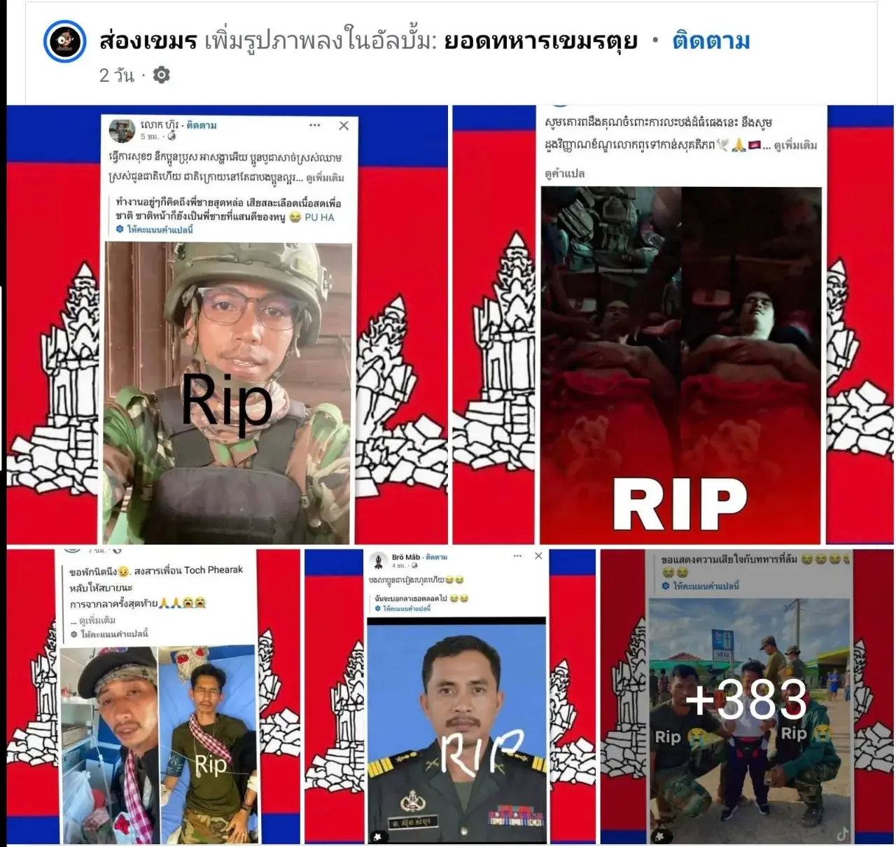 คนเขมรเริ่มไม่ทน โพสต์อาลัยทหารแนวหน้า ตอนนี้ที่กล้าโพสต์ ตายไปแล้ว 387 นาย