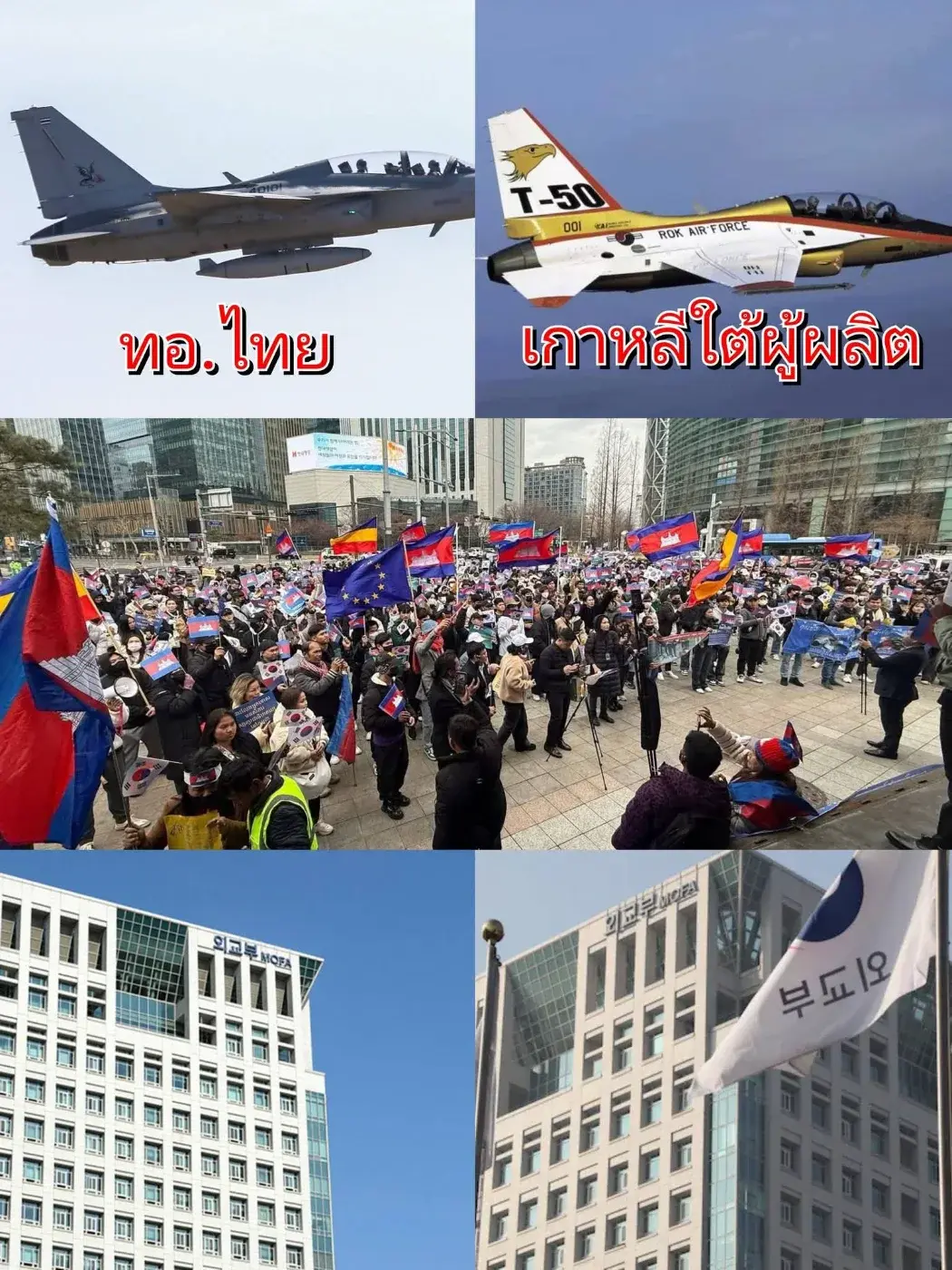 แรงงานเขมรในเกาหลีใต้ นัดแนะกันออกมาเรียกร้องให้ เกาหลีมีมาตรการห้ามทหารไทยใช้เครื่องบินขับไล่ T-50TH หย่อนไขใส่ฐานที่มั่นและยุทโธปกรณ์ทางทหารเขมร