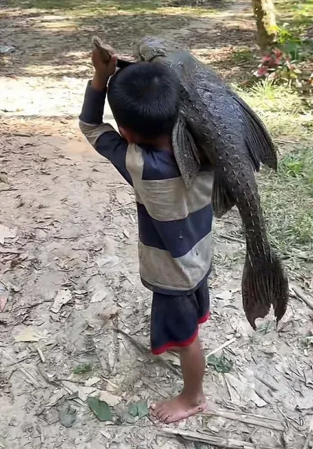 คลิปที่กำลังเป็นไวรัลในตอนนี้ คือ คลิปที่แสดงให้เห็นว่า เด็กชายชาวต่างชาติคนหนึ่ง กำลังเดินแบกปลาขนาดใหญ่ ซึ่งเป็นปลาที่มีรูปร่างแปลกประหลาด เขาเดินไปมาอย่างไม่สะทกสะท้าน โดยปลาตัวดังกล่าวมีขนาดใหญ่เกิน กว่าที่ผู้คนทั่วไปคุ้นเคย ลำตัวใหญ่ เกล็ดหยาบ และ รูปลักษณ์คล้าย "สัตว์ประหลาดใต้น้ำ" จนกลายเป็นจุดสนใจทันที ทำให้ชาวบ้าน 2 ข้างทางจำนวนไม่น้อย ถึงกับตกใจเมื่อได้เห็นภาพอันน่าทึ่งนี้กับตา...