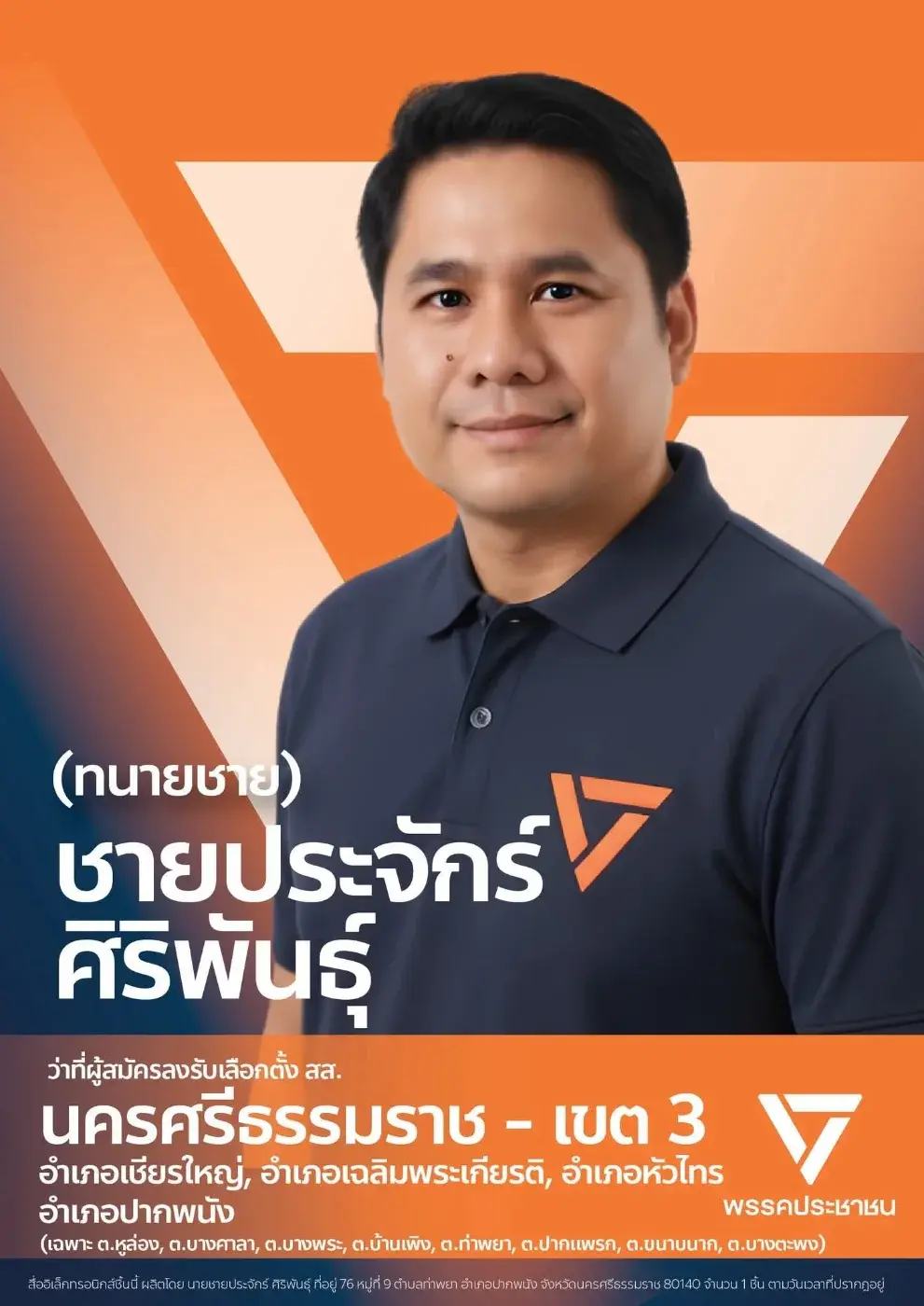 นายประจักร์ ศิริพันธุ์ (ทนายชาย) ว่าที่ผู้สมัครรับเลือกตั้ง เขต 3 จังหวัดนครศรีธรรมราช ในนาม พรรคประชาชน