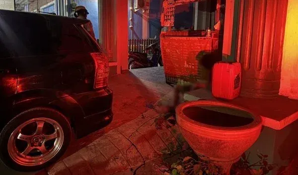 ต่อมาพบชายต้องสงสัยนอนอยู่บริเวณหน้าบ้านของเพื่อนบ้าน โดยมีอาการบาดเจ็บสาหัสจากบาดแผลที่เกิดจากกระจกแตก เจ้าหน้าที่ได้ให้การปฐมพยาบาลเบื้องต้น และ นำตัวส่งโรงพยาบาล อย่างไรก็ตาม ผู้บาดเจ็บได้เสียชีวิตในเวลาต่อมา เนื่องจากการเสียเลือดอย่างรุนแรง