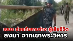 เขมร ช่วยกันหามร่าง ผู้เสียชีวิตลงมา จากเขาพระวิหาร