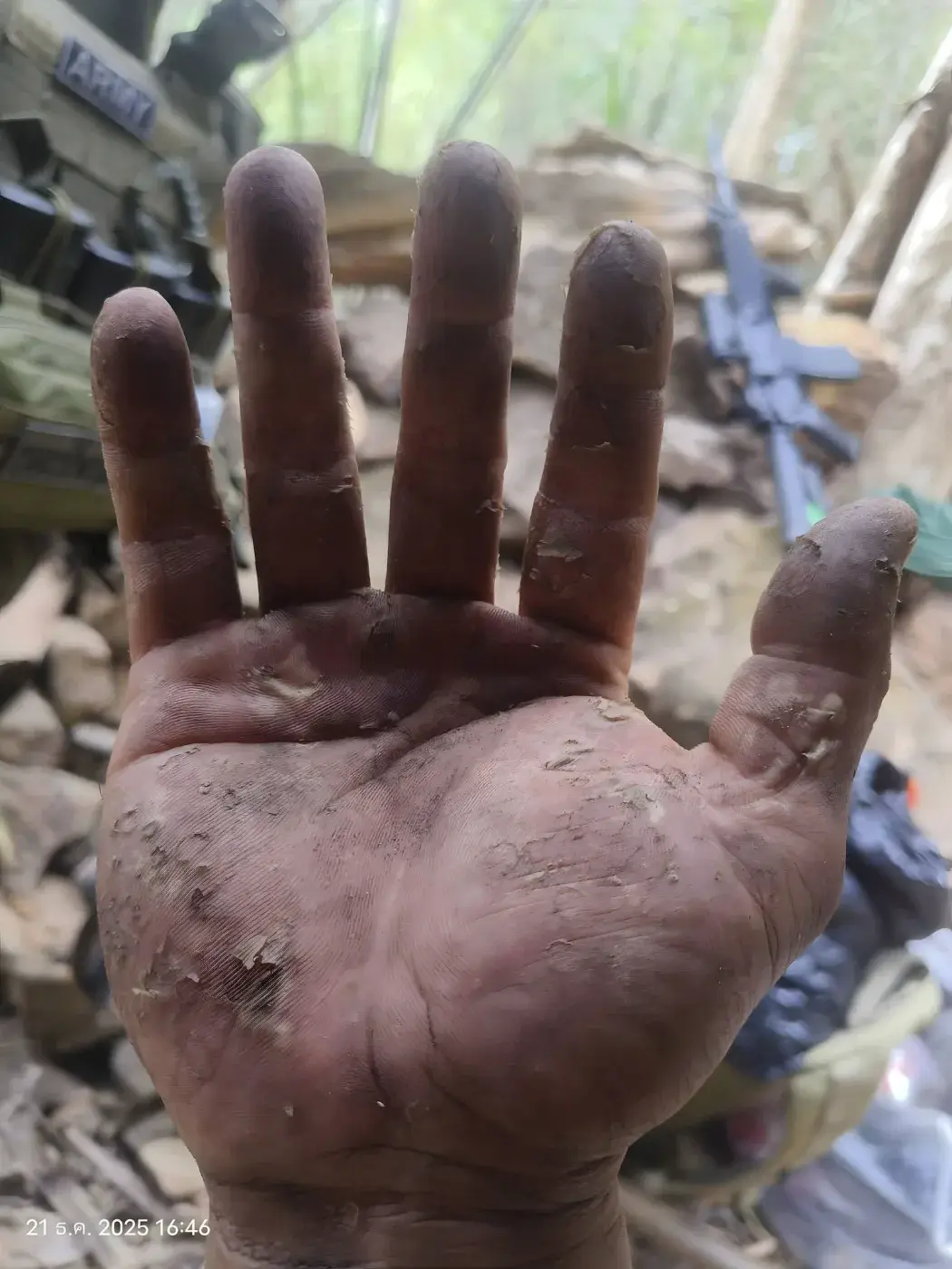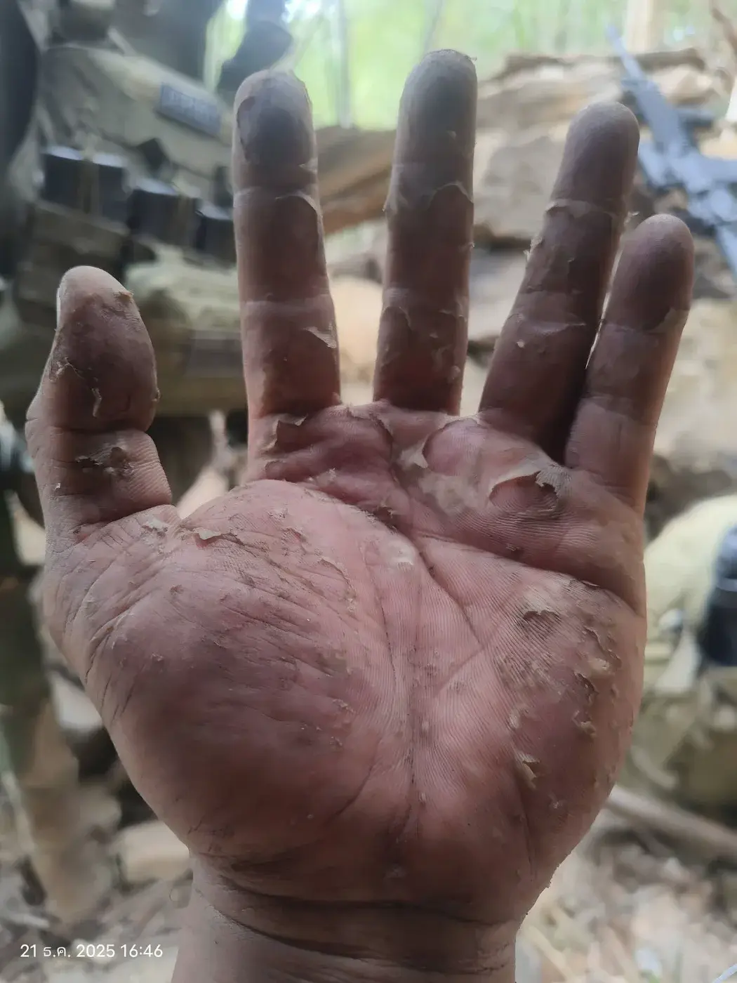 เป็นภาพที่ซึ้งกินใจคนไทยทั่วประเทศเมื่อจู่ๆเจ้าของโพสต์อย่างจ่าสิบเอก ชยพล สารีแก้ว ที่ได้โชว์ภาพมือของตัวเองหลังจากเสียงปืนสงบลงตอนเที่ยงวัน ในภาพจะเห็นมือที่ผ่านศึกหนัก ทั้งรอยถลอก ความกร้าน และคราบเขม่าดินปืu มือคู่นี้อาจดูไม่สวยงามตามพิมพ์นิยม แต่มันคือมือที่จับปืu ตรึงกำลัง และยอมแลกความเจ็บปวดเพื่อรักษาแผ่นดินไทยทุกตารางนิ้วไว้ให้พวกเรา