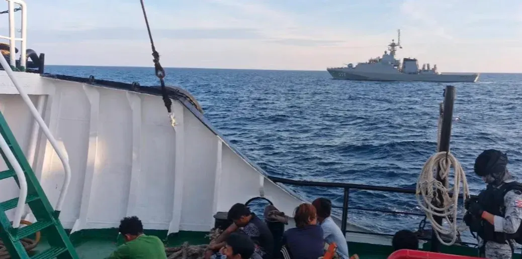 พอเข้าไปตรวจสอบใกล้ ๆ ก็ยิ่งแปลก เพราะเรือลำนี้ไม่มีชื่อเรือ ไม่ติดธงชาติ ไม่โชว์เลขทะเบียน แถมยังปิดระบบระบุตัวตนเรือ (AIS) อีกต่างหาก แบบนี้ในวงการเขาเรียกกันตรง ๆ เลยว่า เรือผี หรือเรือไร้สัญชาติ มีเจตนาหลีกเลี่ยงการตรวจจับแน่นอน