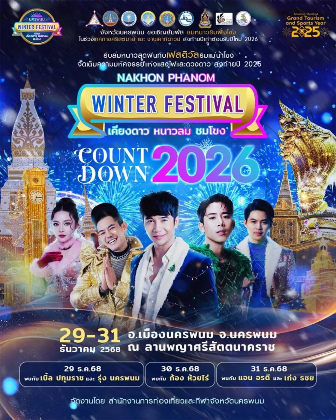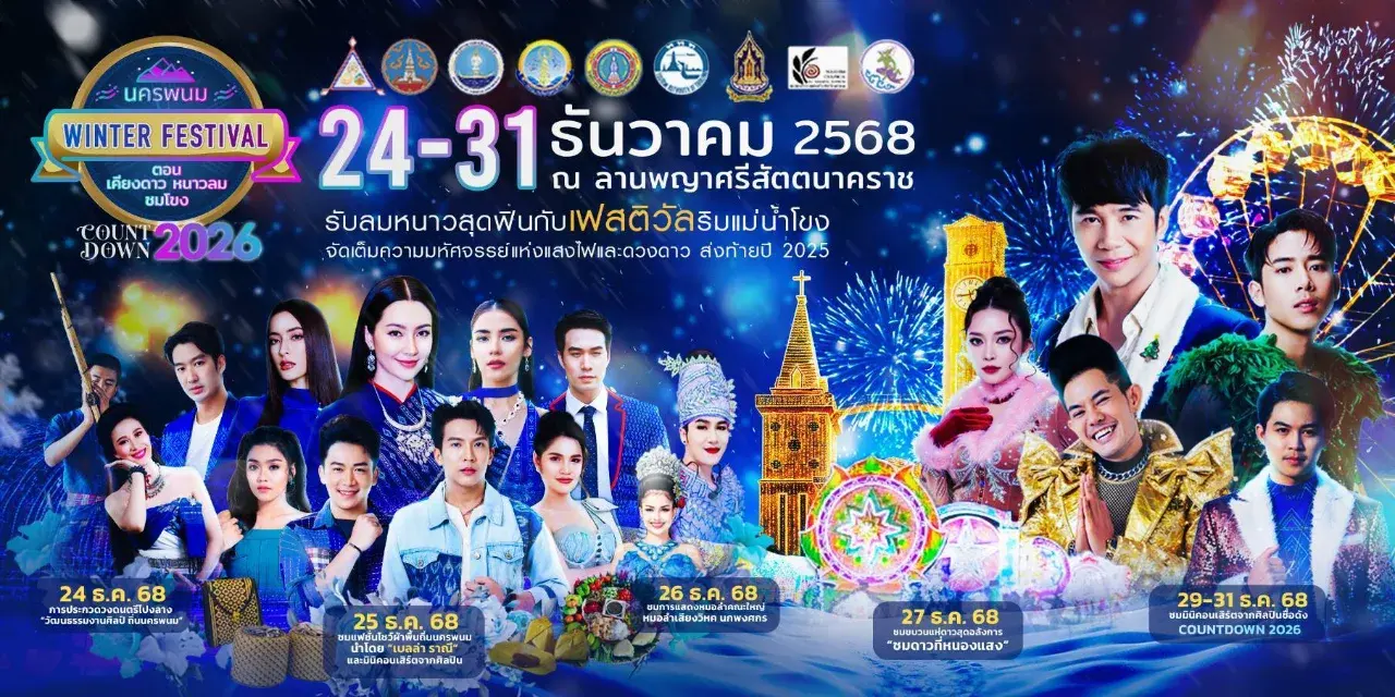 นครพนมเปิดเมืองหนาว! จัด งาน “Nakhonphanom Winter Festival 2026” เคียงดาว หนาวลม ชมโขง ชูอุโมงค์ไฟ 500 เมตร ดาวล้านดวงริมฝั่งโขง