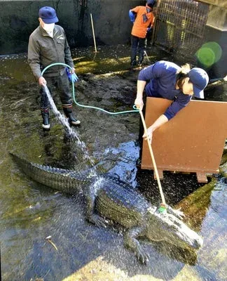 สวนสัตว์ญี่ปุ่นอาบน้ำให้จระเข้และอัลลิเกเตอร์ก่อนปีใหม่