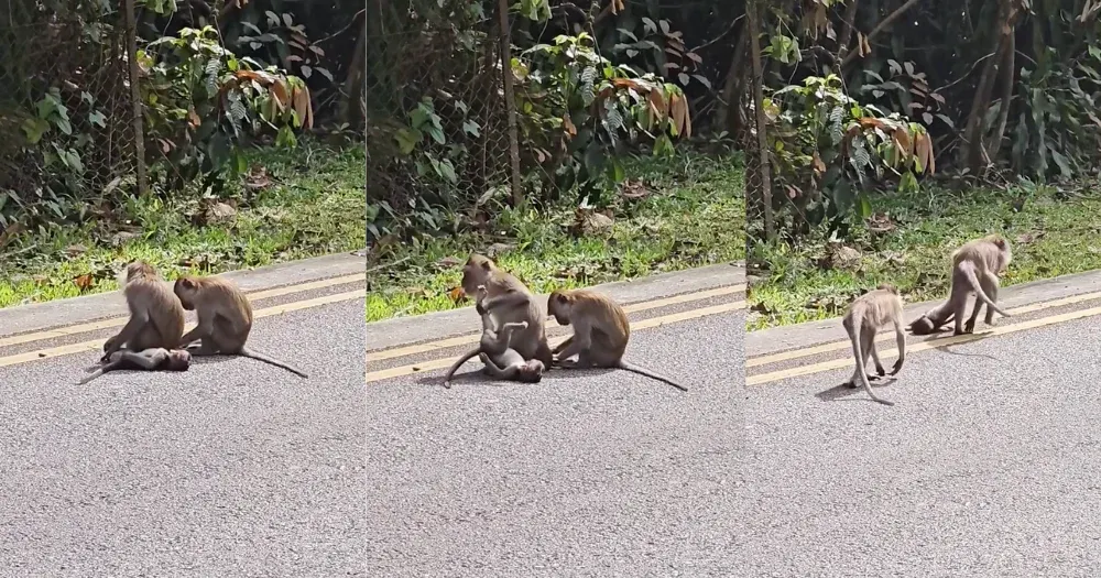 หญิงชาวสิงคโปร์รายหนึ่ง ได้บันทึกภาพเหตุการณ์สะเทือนใจ เมื่อเธอพบลิง 2 ตัว ช่วยกันอุ้มซากลูกลิง บริเวณถนนอัปเปอร์ทอมสันเส้นเก่า ในประเทศสิงคโปร์ ซึ่งพวกมันอุ้มลูกลิงไปยังข้างทาง โดยเธอได้อัพคลิปดังกล่าว ลงในกลุ่มเฟสบุ๊กที่มีชื่อว่า "Singapore Wildlife Sightings"
