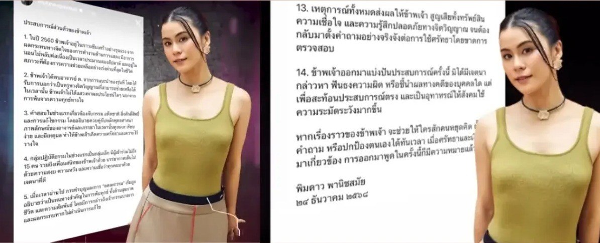 โลกแห่งความเชื่อและศรัทธามักเป็นดาบสองคมที่สามารถเป็นทั้งที่พึ่งทางใจและเครื่องมือล่อลวงชั้นดี กรณีล่าสุดที่สร้างความตกใจให้กับวงการบันเทิงคือการที่นักแสดงสาว "มัดหมี่-พิมดาว พานิชสมัย" ออกมาแชร์ประสบการณ์สุดเจ็บปวดจากการตกเป็นเหยื่อของกลุ่มคนที่แอบอ้างความเชื่อทางจิตวิญญาณ จนต้องสูญเสียเงินที่หามาได้จากการทำงานสุจริตไปกว่า 8 ล้านบาท ภายในระยะเวลา 4 ปี ซึ่งเหตุการณ์นี้มีความเชื่อมโยงกับ "อาจารย์ ต." และ "ไฮโซ ต." ที่กำลังเป็นประเด็นอื้อฉาวจากการล่อลวงกลุ่มคนดังและไฮโซรวมมูลค่านับร้อยล้านบาท