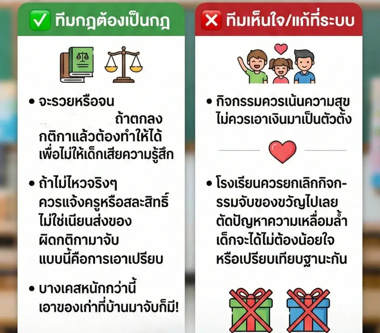 โรงเรียนควรยกเลิกกิจกรรมจับของขวัญไปเลย ตัดปัญหาความเหลื่อมล้ำ เด็กจะได้ไม่ต้องน้อยใจหรือเปรียบเทียบฐานะกัน