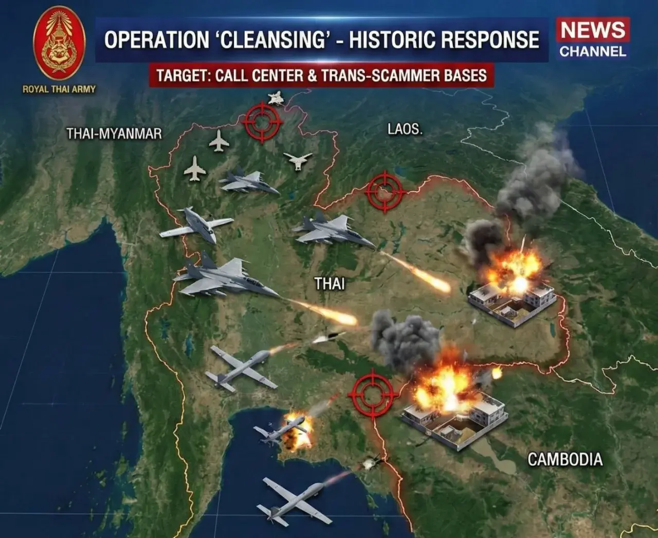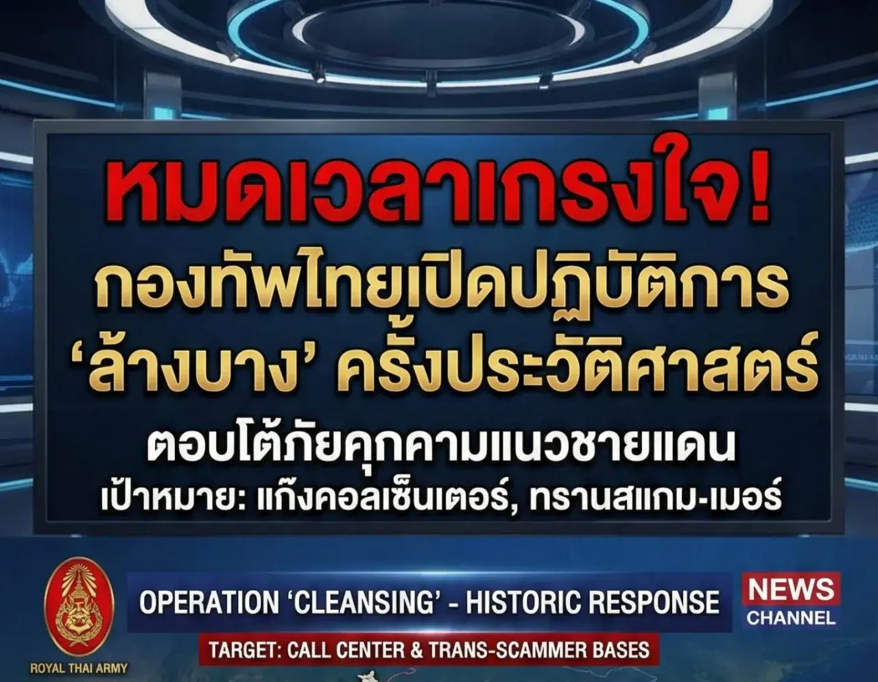 หมดเวลาเกรงใจ! กองทัพไทยเปิดปฏิบัติการ "ล้างบาง" ครั้งประวัติศาสตร์ ตอบโต้ภัยคุกคามตามแนวชายแดน เป้าหมายคือตึกอาคารที่เป็นรังของ "แก๊งคอลเซ็นเตอร์" และ "ทรานสแกมเมอร์" ตัวแสบที่หลอกลวงคนไทยและคนทั่วโลกมานาน