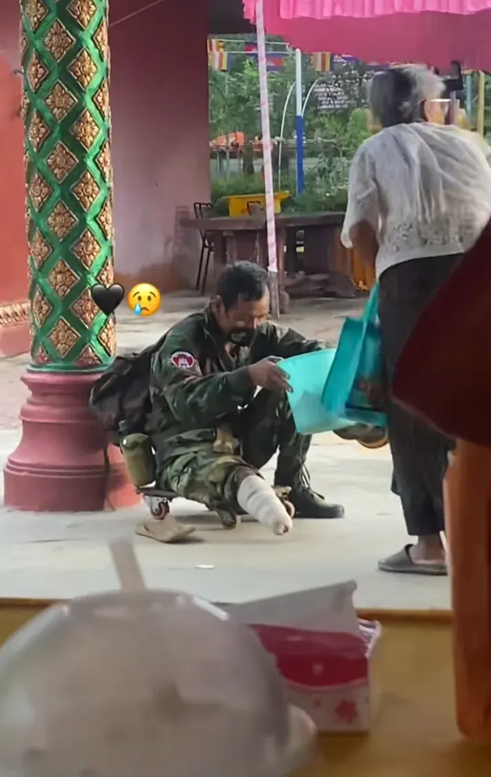 หดหู่ใจ ทหารกัมพูชาพิการจากการรบ สุดท้ายต้องนั่งขอทานในวัด หลังถูกลืมโดยรัฐ