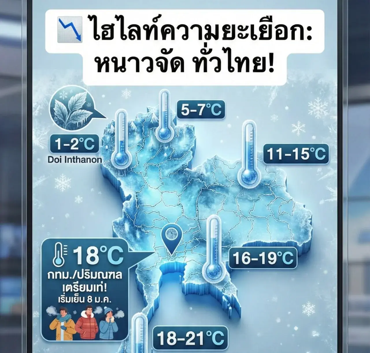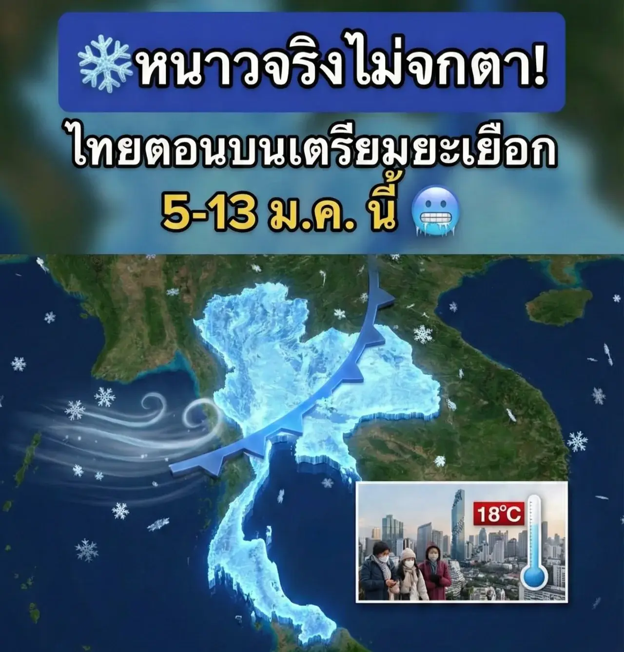❄️ หนาวจริงไม่จกตา! ไทยตอนบนเตรียมยะเยือก 5-13 ม.ค. นี้ 🥶