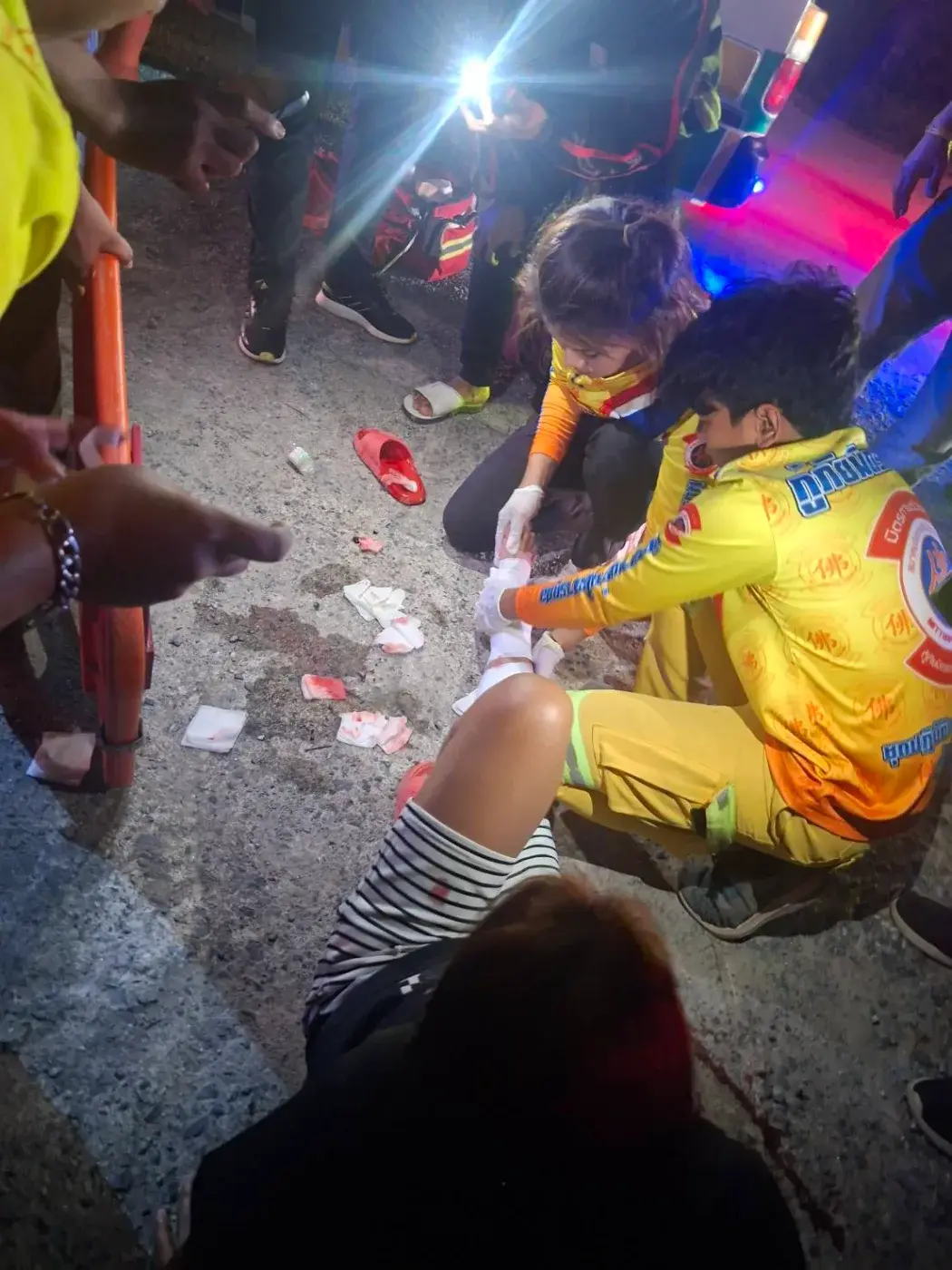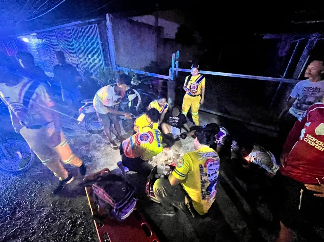 เมื่อเวลา 22.00 น.วันที่ 2 มกราคม 2569 ร.ต.อ.อมรรัตน์ จิตรสมุทร รอง สว.(สอบลวน) สภ.ทุ่งสง จ.นครศรีธรรมราช รับแจ้งเหตุไล่ยิงกัน บนถนนสำโรง - วัดราษฎร์ประดิษฐ์ หมู่ 3 ต.นาหลวงเสน อ.ทุ่งสง จ.นครศรีธรรมราช มีผู้บาดเจ็บ 3 ราย เป็นพ่อแม่ลูก จึงพร้อมด้วย พ.ต.อ.สมพร นิติภักดิ์ ผกก.,และกู้ภัยมิตรภาพทุ่งสง รีบเดินทางไปตรวจสอบ