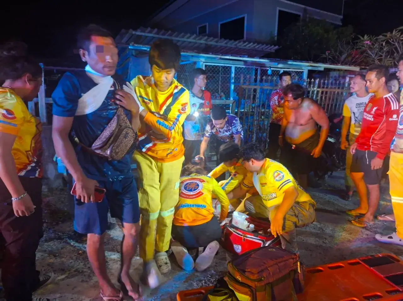 ที่เกิดเหตุพบคนเจ็บ 3 ราย จึงรีบนำคนเจ็บทั้งสามรายส่งโรงพยาบาลทุ่งสง สอบสวนทราบผู้บาดเจ็บทั้ง 3 ราย เป็นพ่อแม่ลูก ทราบภายหลังชื่อ นายวิษุวัต อายุ 37 ปี มีแผลถูกยิงเข้าลำคออาการไม่สาหัส ยังให้การได้ และ น.ส.นฤมล อายุ 32 ปี ถูกยิงเข้าขาขวา และ ด.ช.ณัฐวัฒน์ อายุ 2 ปี ถูกยิงเข้าต้นขาขวา 1 นัด