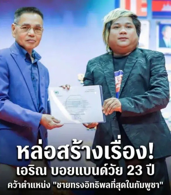 วงการบันเทิงกัมพูชาต้องสั่นสะเทือนเมื่อไอดอลหนุ่มรุ่นใหม่ไม่ได้หยุดอยู่เพียงแค่การสร้างความบันเทิงบนเวที แต่กลับกลายเป็นผู้ที่มีบทบาทสำคัญต่อการขับเคลื่อนสังคมในระดับชาติ ล่าสุดสื่อกัมพูชาพร้อมใจกันตีข่าวใหญ่ถึงการมอบใบประกาศเกียรติคุณยกย่องให้ "เอริญ" (Erin) สมาชิกวงบอยแบนด์ชื่อดัง "อิโน" (Ino) เป็นชายที่ทรงอิทธิพลที่สุดในกัมพูชาประจำปีนี้ ซึ่งนับเป็นปรากฏการณ์ใหม่ที่สะท้อนให้เห็นถึงพลังของคนรุ่นใหม่ในดินแดนนครวัดที่ก้าวล้ำหน้าบทบาทดั้งเดิมของกลุ่มการเมืองหรือกองทัพไปอย่างสิ้นเชิง
