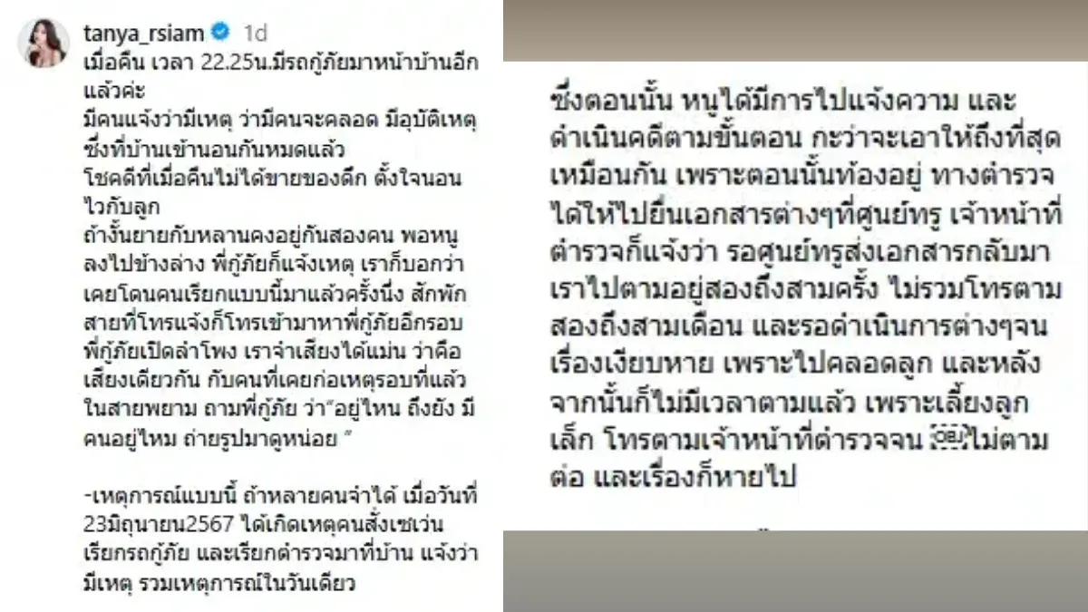 #ธัญญ่าอาร์สยาม #TanyaRsiam #กู้ภัย #แจ้งเหตุเท็จ #ความปลอดภัยในบ้าน #ข่าวบันเทิง #ป่วนดารา