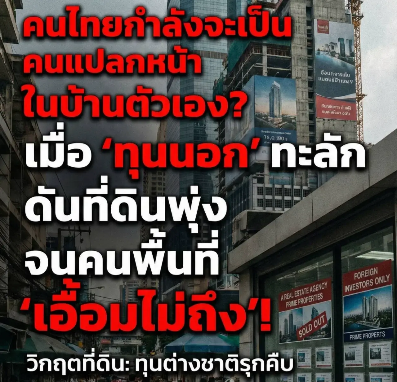 วิกฤตเงียบ?เมื่อคนไทยกำลังกลายคนแปลกหน้าในบ้านเกิดจับตาคลื่นทุนนอกดันที่ดินพุ่งจนคนท้องถิ่นเอื่อมไม่ถึง