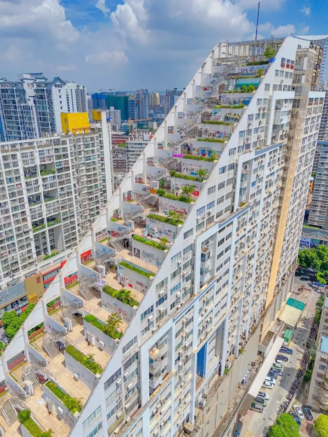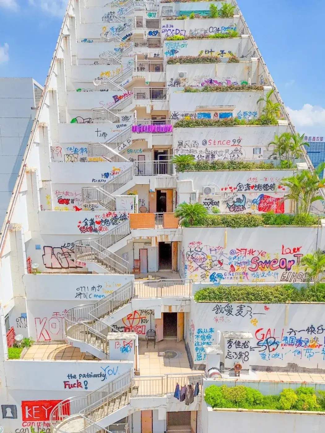 ตอนนี้บนสื่อโซเชียลมีเดียของจีน ได้มีการแชร์ภาพของอาคารแห่งหนึ่ง ในนครหนานหนิง เขตกว่างซี ประเทศจีน ซึ่งมีสถาปัตยกรรมอันโดดเด่นและแปลกตา จนกลายเป็นกระแสไวรัลอย่างรวดเร็ว โดยอาคารแห่งนี้กลายเป็นจุดเช็กอินยอดนิยม มีผู้คนจำนวนมากเดินทางมาเยี่ยมชม ไม่เพียงเพราะผนังด้านหน้าที่ถูกปกคลุมด้วยงานกราฟฟิตี้ [ศิลปะสตรีตอาร์ต] เท่านั้น แต่ยังรวมถึงการออกแบบในลักษณะขั้นบันไดที่ไม่เหมือนใคร ซึ่งเมื่อมองจากระยะไกลจะดูราวกับเนินเขาเทียมกลางเมืองใหญ่