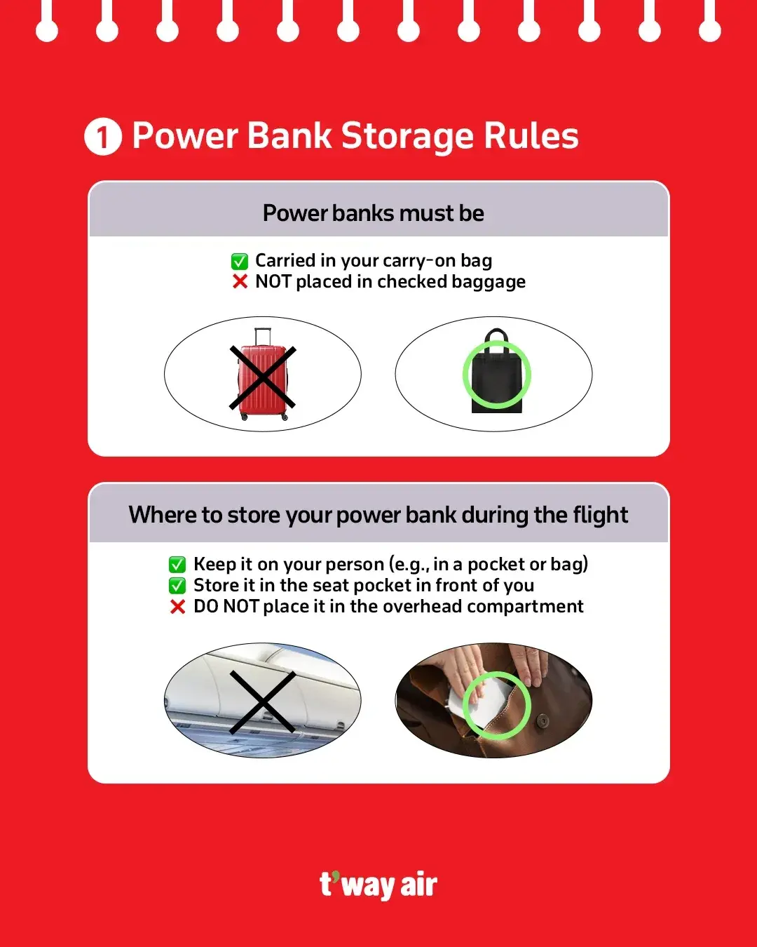 วันนี้ [ตามเวลาท้องถิ่น] ผู้โดยสารจำนวน 8 รายถูกนำตัวส่งโรงพยาบาล หลังจากพาวเวอร์แบงค์ เกิดไฟลุก บนเที่ยวบินของสายการบิน "ที เวย์ แอร์" หมายเลข TW634 ซึ่งกำลังเดินทางจากเมืองซานย่า มณฑลไห่หนาน ประเทศจีน ไปยังเมืองช็องจู ประเทศเกาหลีใต้ โดยบนเครื่องบินลำดังกล่าว มีลูกเรือ 6 คน และ ผู้โดยสาร 32 คน