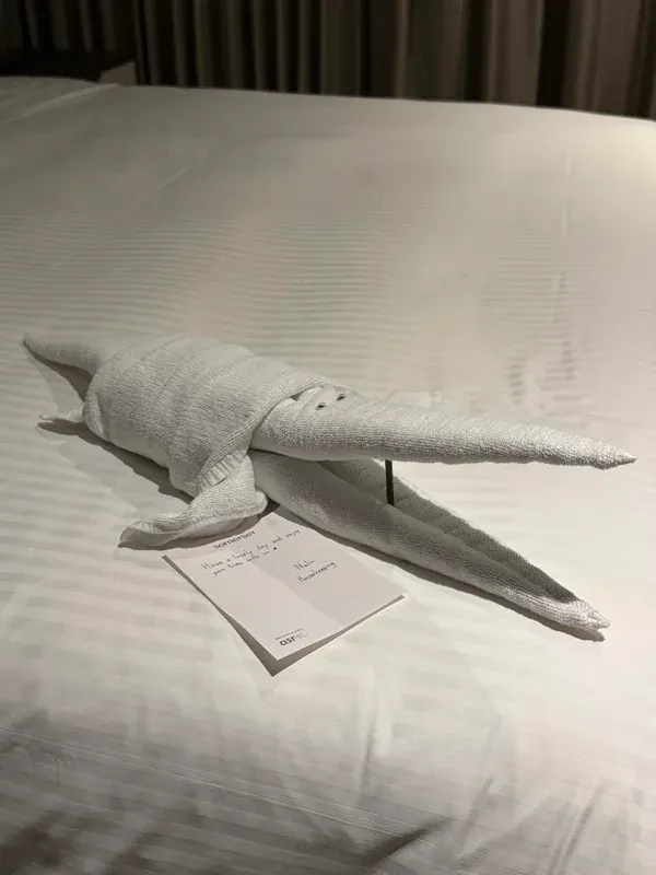 เรื่องราวนี้เป็นของนักท่องเที่ยวชาวไต้หวันชื่อ yanfu.l ได้เข้าพักโรงแรมแห่งหนึ่งในประเทศไทย ในวันที่ 11 มกราคม 2569 และเกิดความประทับใจสุด ๆ ในความมีศิลปะของพนักงาน เพราะในวันแรกที่เข้าพัก เขาเห็นผ้าเช็ดตัวที่พับเป็นรูปหงส์ 2 ตัว เขาจึงเกิดความคิดว่าจะขอให้พนักงานพับผ้าเป็นสัตว์ชนิดอื่นจะได้ไหม
