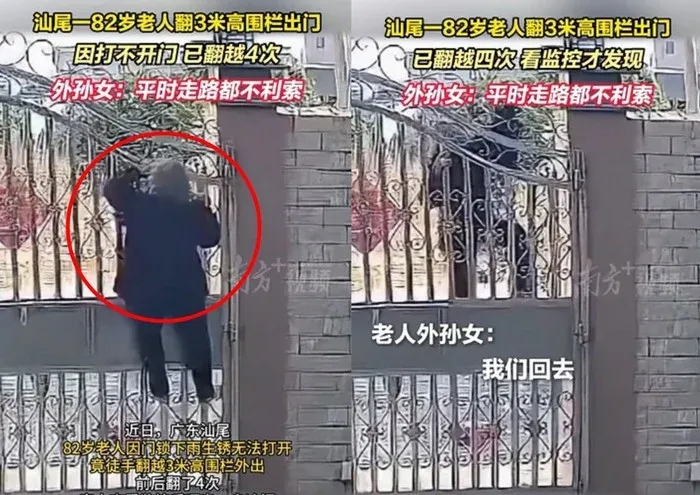 หลานสาวแซ่ "เฉิน" เปิดเผยว่า "เมื่อวันที่ 6 มกราคม 2026 ขณะที่ครอบครัวตรวจสอบกล้องวงจรปิด จึงพบว่าคุณยายได้ปีนข้ามประตูรั้วที่สูงเกือบ 3 เมตร ภาพจากกล้องแสดงให้เห็นว่าคุณยายวัย 82 ปี อาศัยจังหวะที่ไม่มีใครอยู่บ้าน ปีนข้ามประตูเหล็กด้วยตนเอง ทำให้ผู้ที่ได้เห็นต่างรู้สึกทึ่งอย่างยิ่ง"