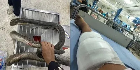 สาวไทยใจเด็ด ใส่เดี่ยวกับงูจงอางตัวใหญ่จนชนะ ก่อนพาตัวเองมารักษาที่โรงพยาบาล