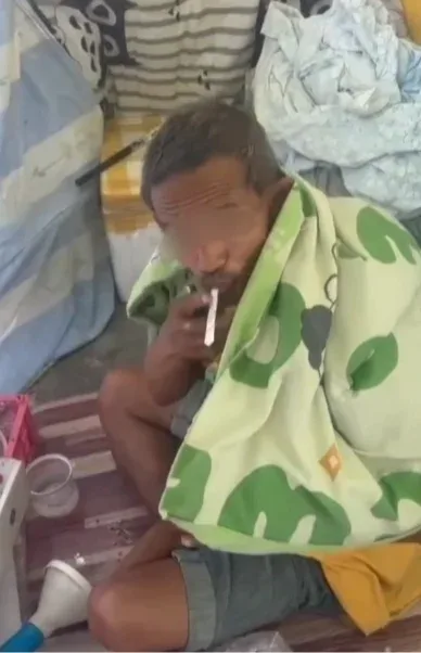 ผวา!ชายเร่ร่อนนอนหน้าบ้านริมถนน เสพยาบ้า ไม่สนโลก